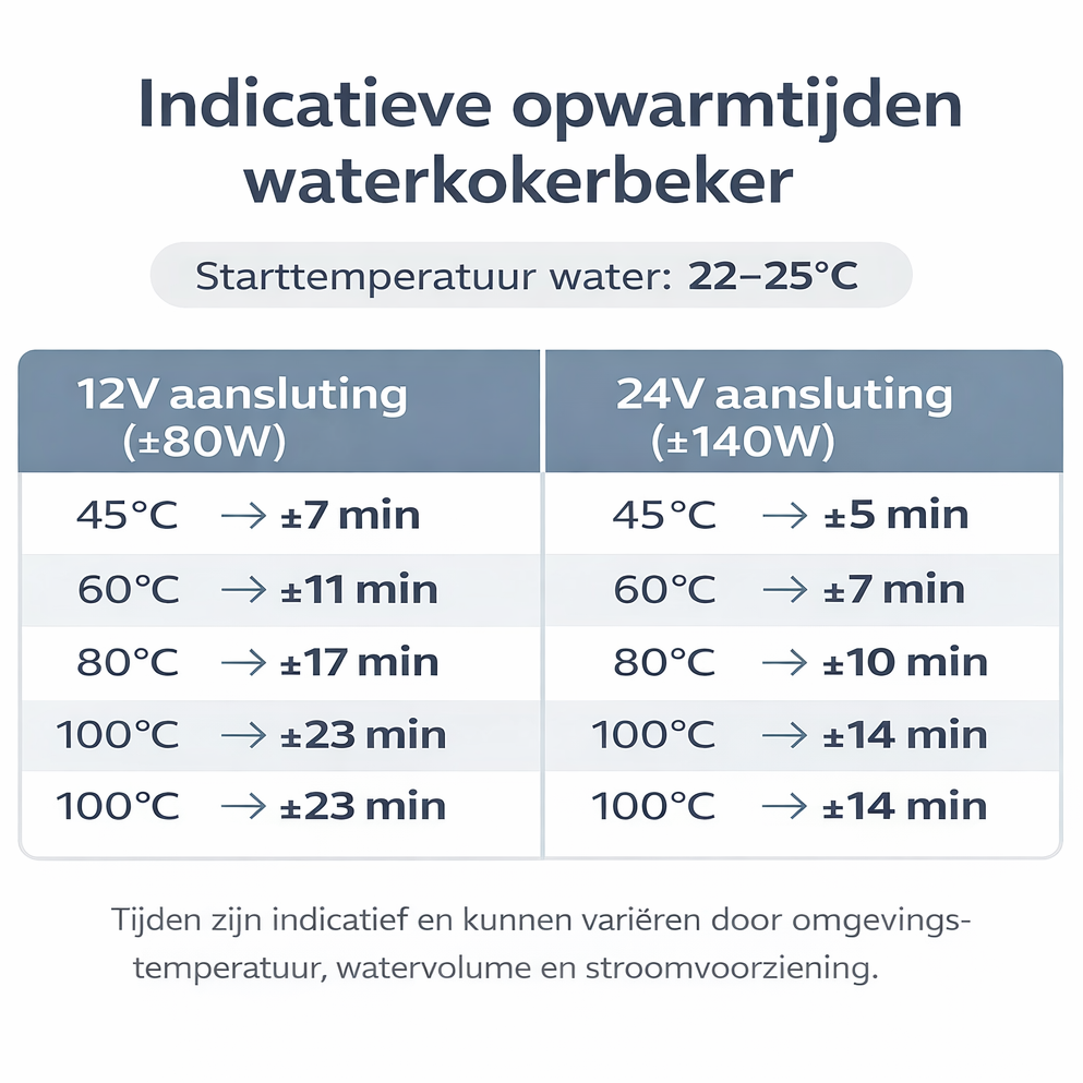 Avec cet ensemble complet – comprenant une bouilloire électrique, un mug isotherme et un puissant convertisseur 10 A – vous aurez toujours de l'eau chaude à portée de main, que vous soyez en déplacement ou à la maison. Le mug isotherme fonctionne sur 12 V et 24 V et propose quatre températures (45 °C, 60 °C, 80 °C et 100 °C), ce qui le rend idéal pour le café, le thé, la soupe, les nouilles et même les purées pour bébé. Grâce à son couvercle refermable et sa capacité de 400 ml, il s'adapte à la plupart des porte-gobelets.