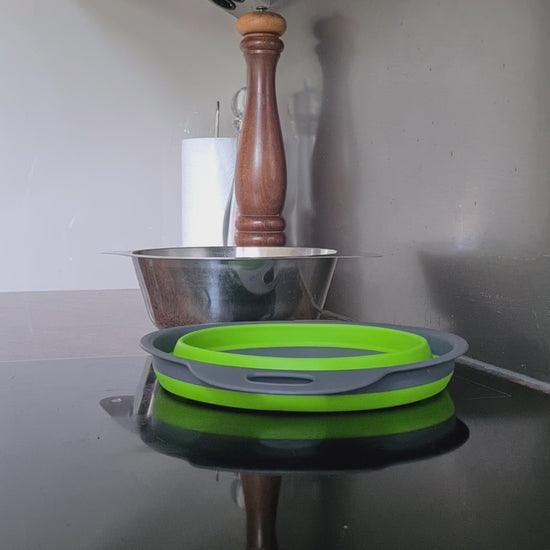 Dit opvouwbare siliconen vergiet van THINGS-TO-BUY met een diameter van 20 cm is een slimme en praktische oplossing voor elke keuken. Of je nu pasta afgiet, groenten spoelt of fruit wast, dit vergiet biedt gemak en hygiëne in één. Het inklapbare ontwerp maakt het bijzonder ruimtebesparend: eenmaal ingeklapt past het moeiteloos in een lade, kast of kampeeruitrusting. Daarmee is het niet alleen ideaal voor thuis, maar ook een perfecte keuze voor gebruik in camper of caravan, waar elke centimeter telt.